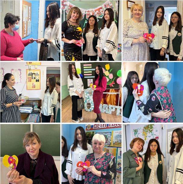 Волонтеры нашей школы поздравили наших учителей и сотрудников прекрасного пола с Международным женским днем