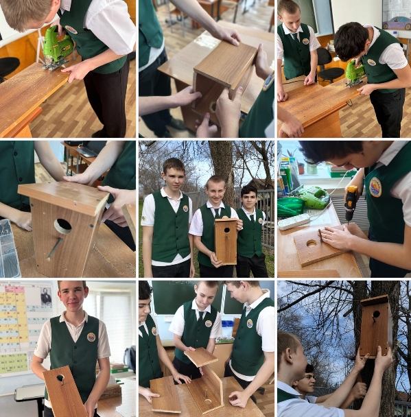 скворечник для птиц. Готовый скворечник они повесили на территории школы. Это не только прекрасная традиция, приучающая учеников заботиться о братьях наших меньших, но и замечательное творческое занятие. Доброта не знает границ – сделайте и вы скворечник для птиц✨