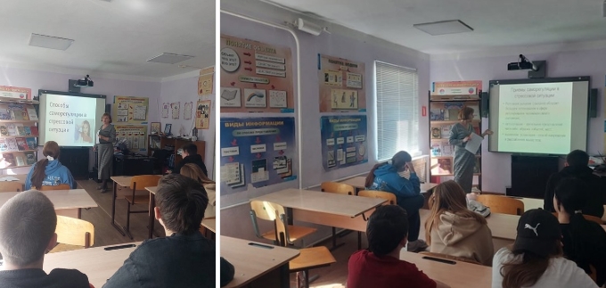Согласно плану мероприятий школы на весенние каникулы, 24.03. 2025 года педагог - психолог Махно Н.В. провела с учащимися 9 класса занятие: «Способы саморегуляции в стрессовой ситуации». На занятии ребята повторили основные приемы самопомощи в стрессовой ситуации, как справиться с волнением на экзамене, говорили, что в каждом из нас есть сильные положительные стороны, которые нужно использовать, узнали о главных правилах успеха на ОГЭ.
