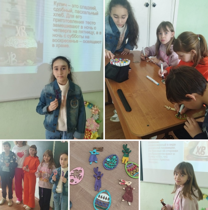 Согласно плану мероприятий МБОУ ООШ №16 п. Заречного на весенние каникулы, 25.03.2025г. учитель Недосекова Ф. З. и библиотекарь Махно Н.В. провели с учащимися 2 и 3 класса мастер-класс « Пасхальный зайчик и угощение». Дети узнали, что Пасха — самый светлый праздник в христианстве, узнали о традиции поздравлять друг друга в этот день, красить куриные яйца, как символа начала новой жизни. Затем ребята изготовили свои пасхальные сувениры.