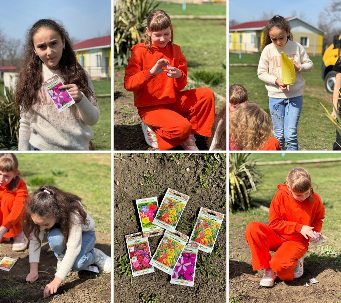Младшие классы участвуют в экологическом десанте! Ребята садят цветы в школьной клумбе