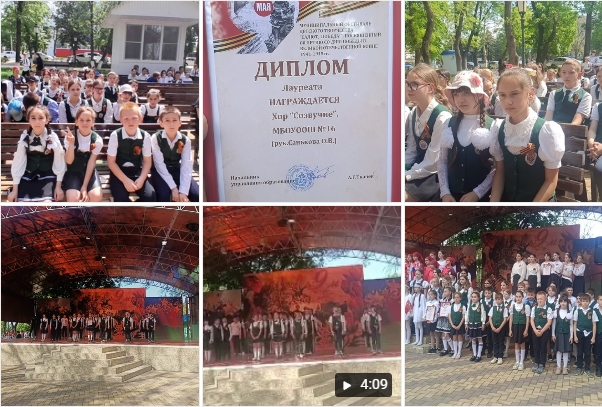 6 мая 2025 года, хор "Созвучие", состоящий из учащихся нашей школы, принял участие в муниципальном фестивале детского творчества "Салют, Победа!", который был посвящён 80-летию Победы в Великой Отечественной войне 1941-1945 гг. и получил диплом лауреата данного мероприятия. |